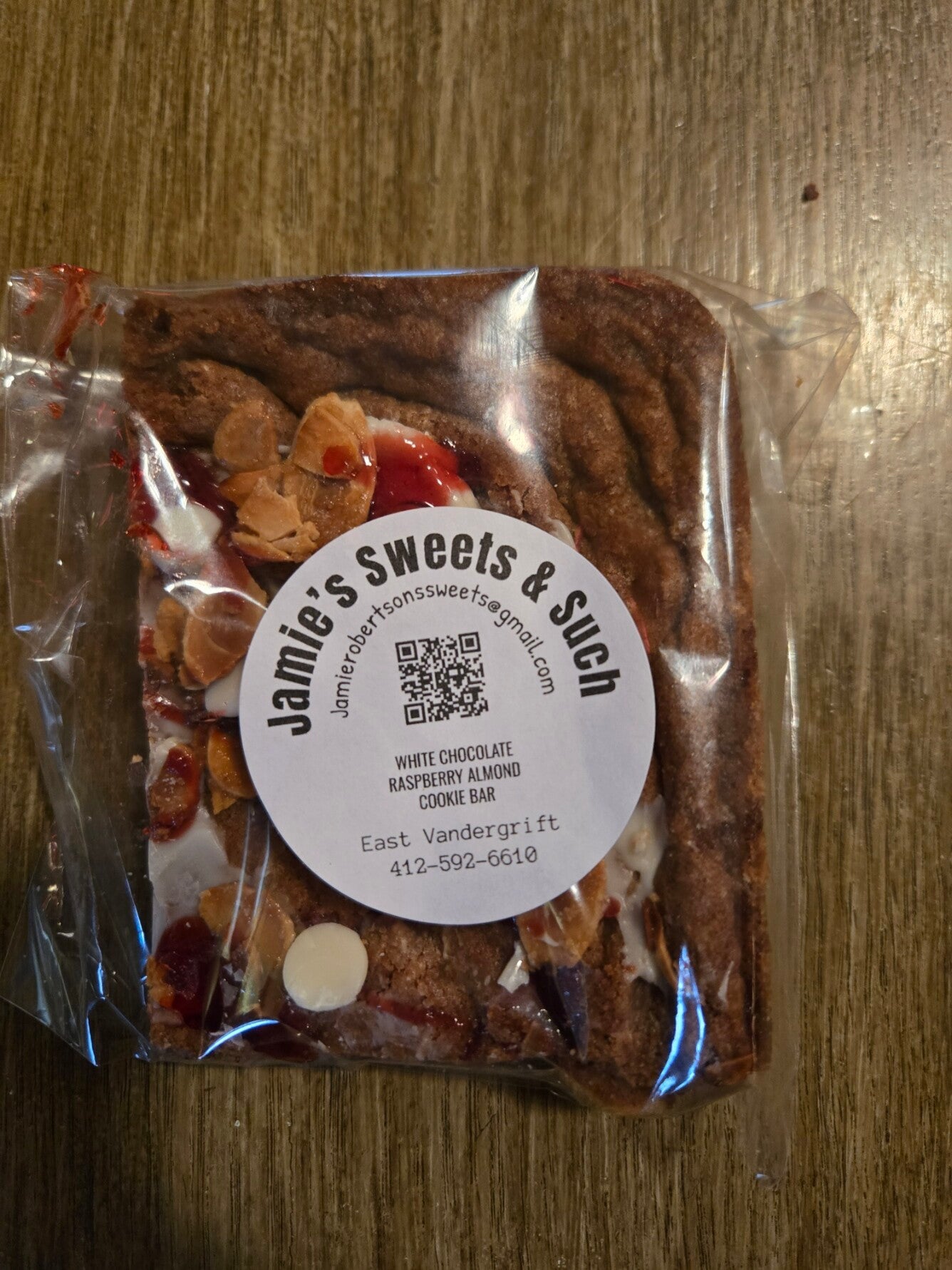 Meet Jamie, the heart behind every treat. With a culinary degree and a serious passion for baking, her journey began with a visit to charming Vandergrift, PA. Inspired by the town's spirit, she launched her licensed home bakery, Jamie’s Sweets & Such, turning a lifelong dream into a delicious reality for the local community. Through farmers markets and community events, she's met incredible people and is grateful for every customer who supports her craft. Her next goal? A food truck and eventually a storefront!