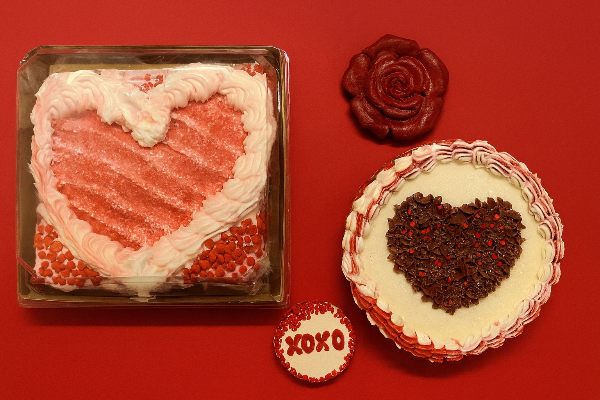 Chocolate Chip Lovers Cake + Be Mine Bento Box. Chocolate Chip Lovers Cake is a soft, oversized chocolate‑chip cookie cake (4.5" x 5") swirled with creamy buttercream and finished with festive pink and red sprinkles. Sweet, simple, and perfect for sharing with someone you love. Be Mine Bento Box with CupCakes for Two is a sweet little Valentine’s feast featuring a 5" two‑layer chocolate cake paired with two rich chocolate cupcakes. Everything is swirled in velvety buttercream and dressed in romantic Valentine’s décor—perfect for sharing with your sweetheart and making the moment feel extra special.